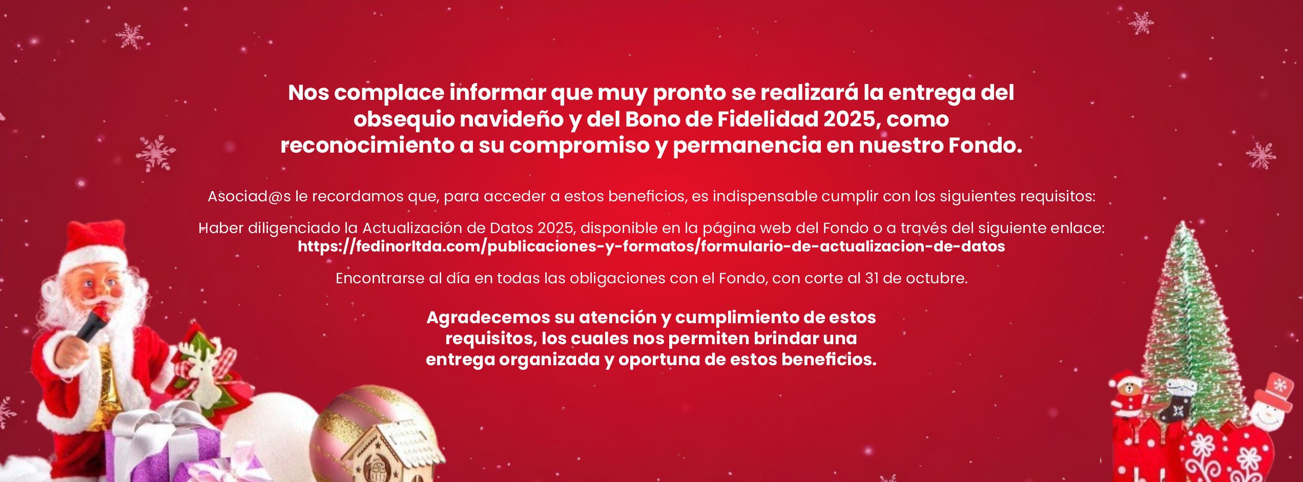 FEDINOR LTDA., fue creado para satisfacer las necesidades comunes de los funcionarios asociados bajo un objetivo fundamental como la promoción social, elevación del nivel de vida de él y el de su familia, con un permanente y oportuno apoyo, fortaleciendo los lazos de compañerismo a través del desarrollo social y laboral de los mismos